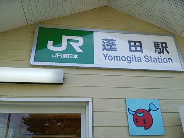 蓬田駅にはトマトのマスコットキャラクター「ヨモットくん」の姿があり地域全体がトマトに親しんでいます。