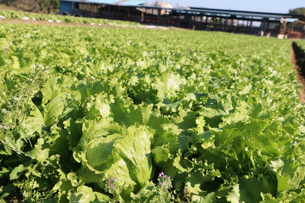 四季菜くらぶが位置する八千代町は茨城県の南西に位置し、年間8カ月間は野菜栽培に適しているという温暖なエリア。恵まれた気候を生かして、レタス、サニーレタス、グリーンリーフ、きゃべつ、ほうれん草、 ブロッコリー、にんじん、きゅうり、長ネギ、春菊、小ねぎ、ピーマンなど、さまざまな品目を栽培しています。