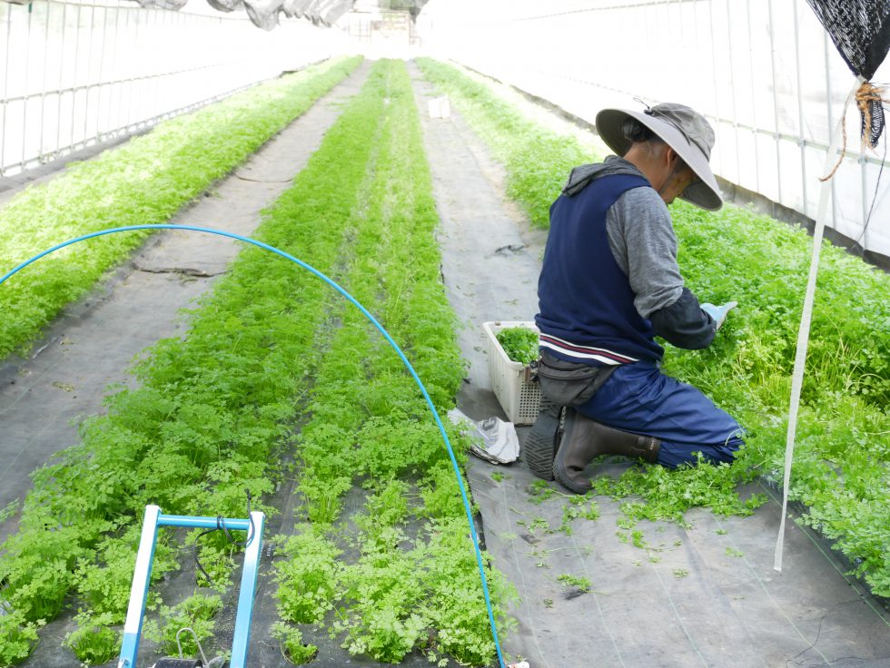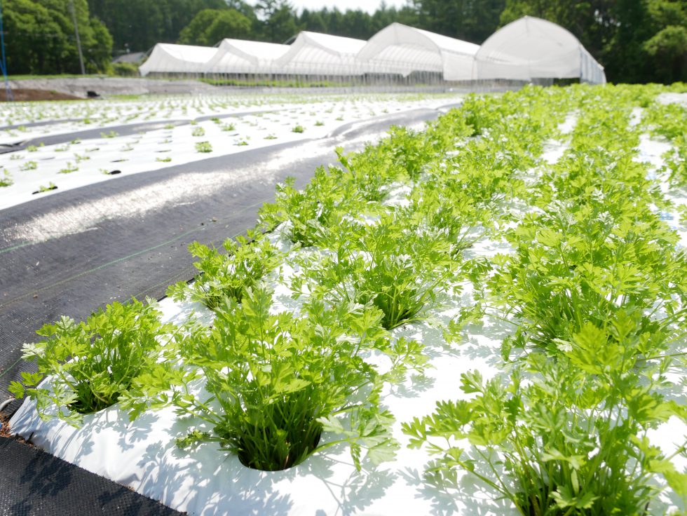夏の出荷に合わせ、長野農場ではパクチーやチャービル、ディルなどを栽培、安定収穫を図っています。