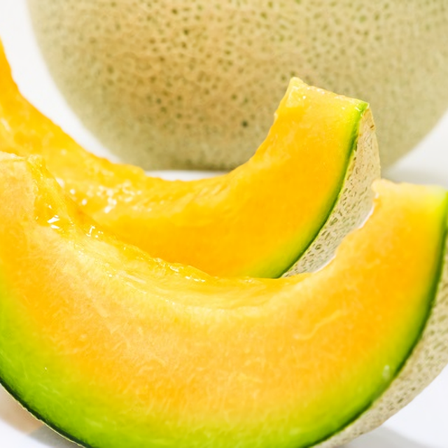熊本県産は2~3月のレノンメロンから始まり、4月後半~5月まで出回るクィンシーへとリレー。産地が北上して、茨城県産のレノンメロンが4月~5月上旬、クィンシーが5月上旬~6月下旬、山形県産の鶴姫レッド・クィンシーが6月下旬~8月上旬、北海道産の夕張メロンが7月~9月(ピークは7月中旬~8月中旬頃)と続きます。