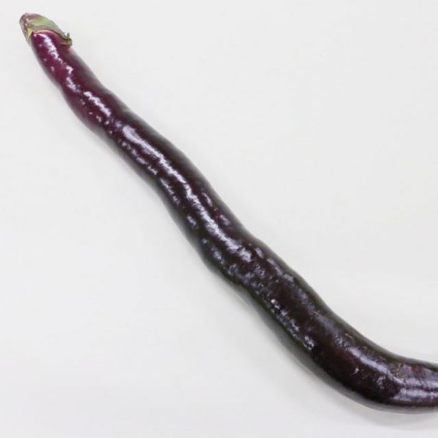 長さが40~60センチほどにもなる長いナス。熊本県を中心とした九州の特産野菜です。皮はややしっかりしていますが果肉はふんわりと柔らか。太さも均等なので、均一に火が通りやすいのがメリットです。
